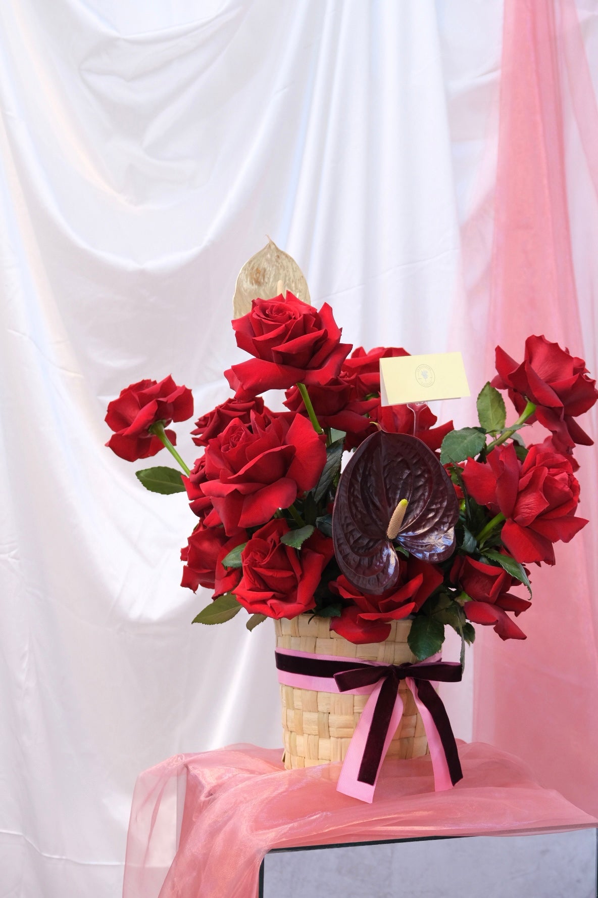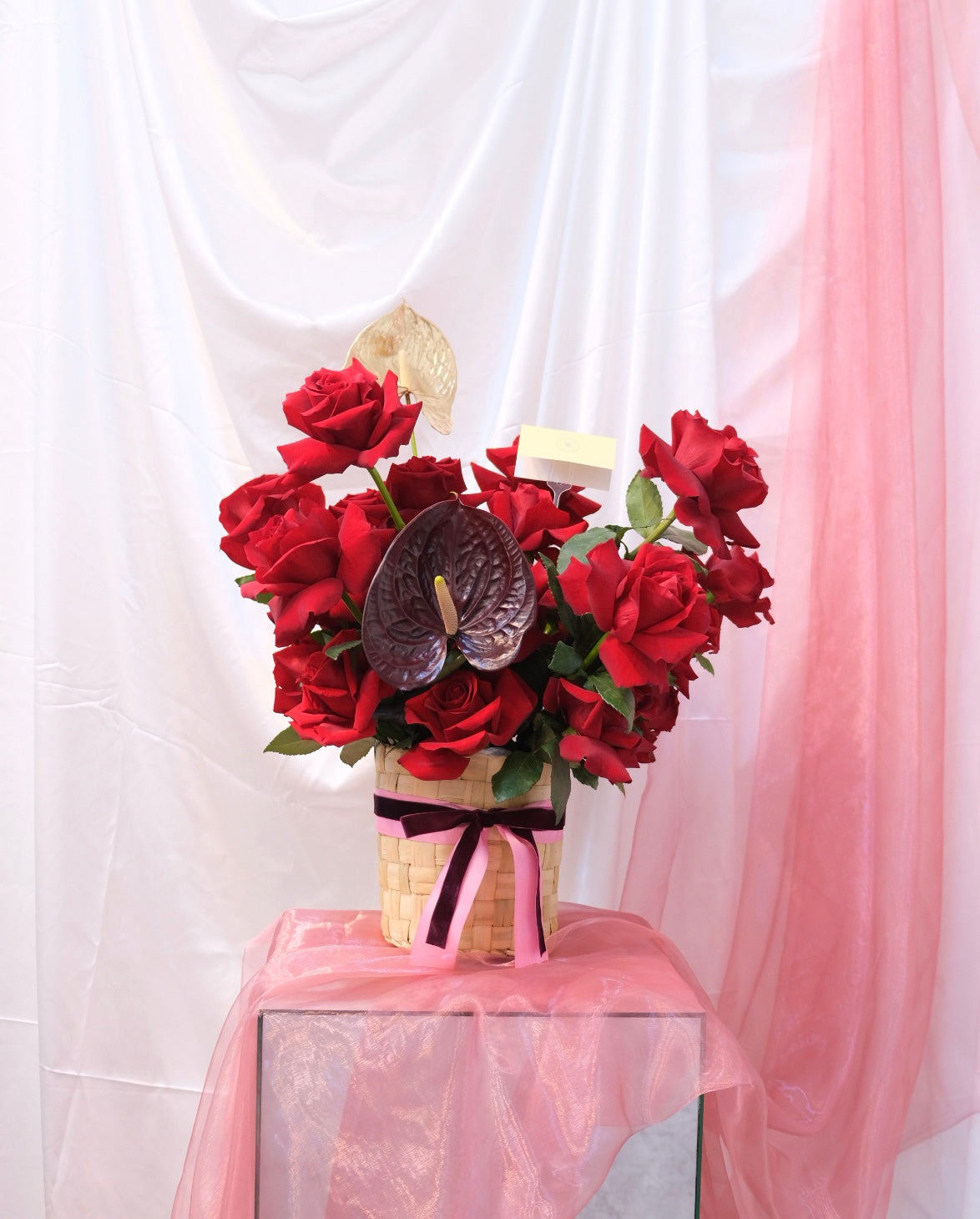 Arreglo hecho a base de Rosas premium, Anturios y demás.
